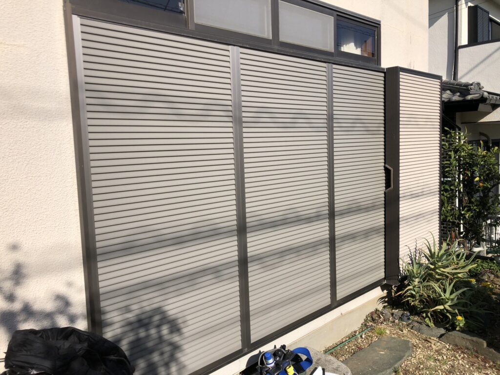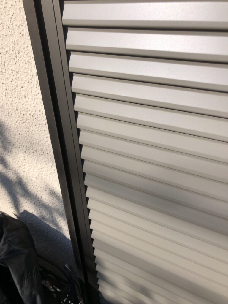 ▲トステムの色は標準タイプの雨戸で、色はシャイングレー!