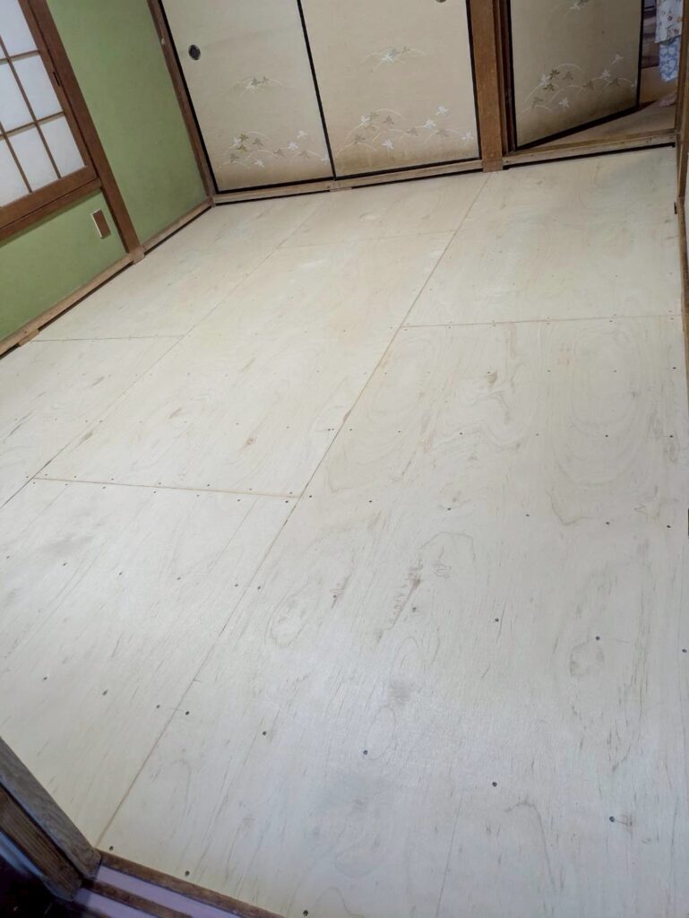 家具移動から始まり、畳、床板の撤去、床板張替え、畳新規作成、