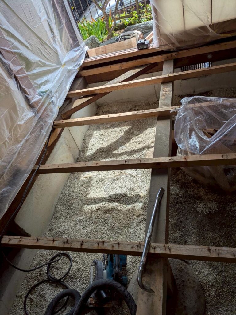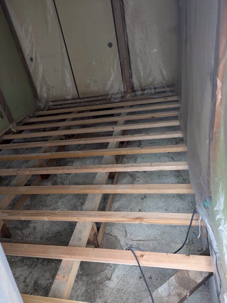 ▼工事後の根太です。太い根太が細かいピッチで入っております。